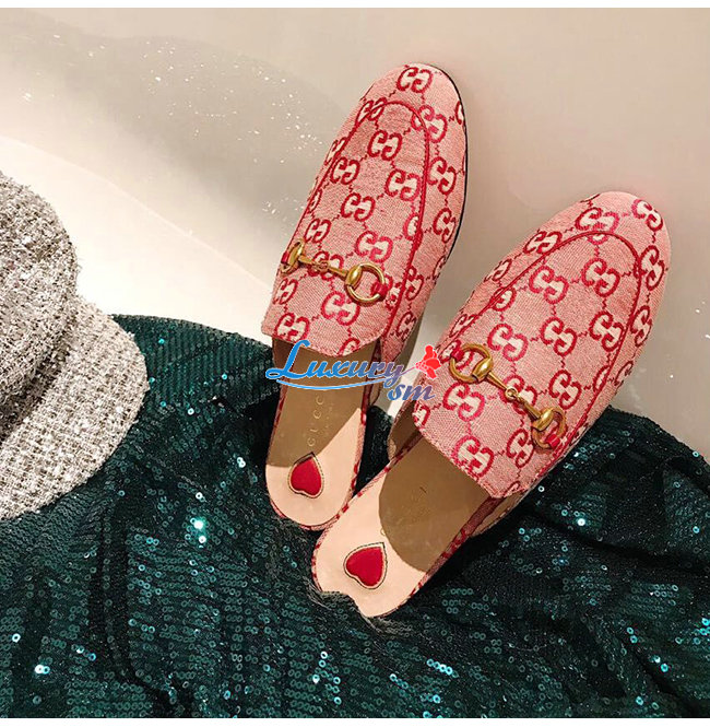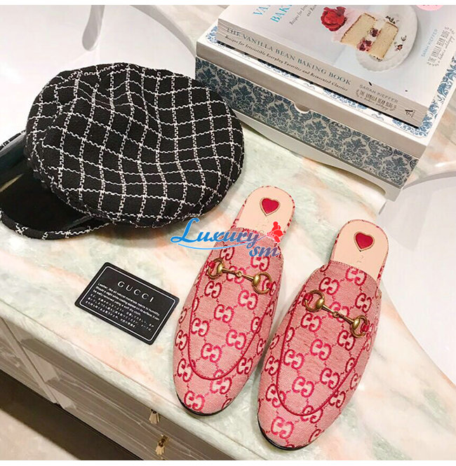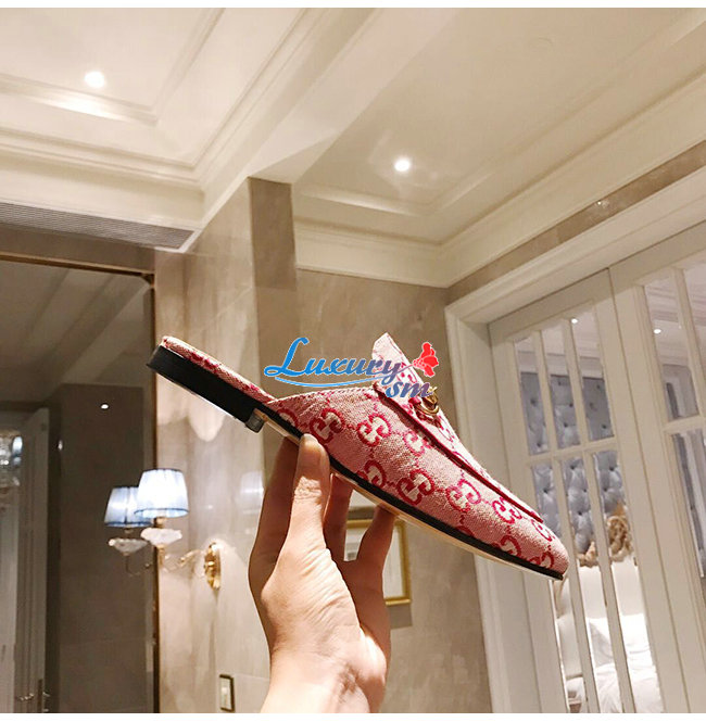 GUCCI-475094 9380 구찌 프린스타운 GG 캔버스 핑크 슬리퍼