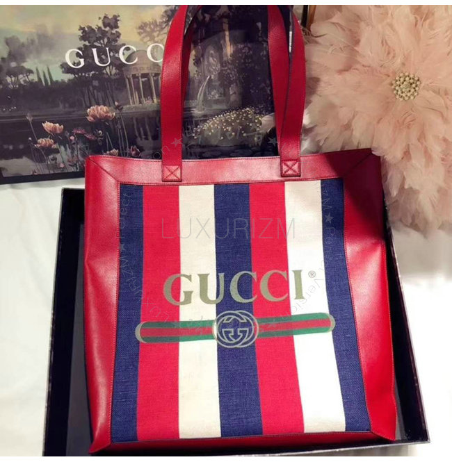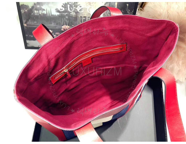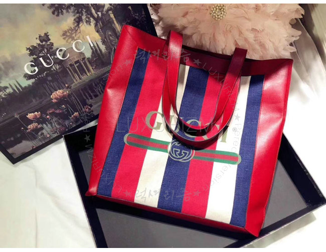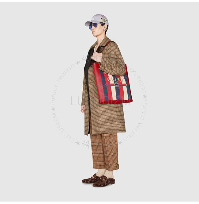 [스페셜오더]GUCCI-523781 9089 구찌 실비 스트라이프 캔버스 구찌 프린트 미디엄 토트백