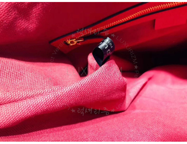 시드 효과의 실비 바이아데라 린넨 캔버스 히비스커스 레드 가죽 트리밍 브래스 메탈