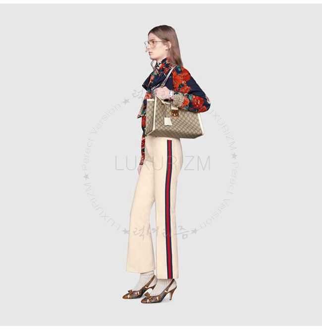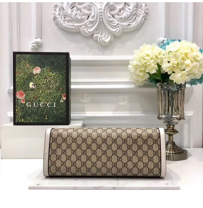 베이지/에보니 GG 수프림 캔버스 친환경 소재 화이트 가죽 디테일 라이트