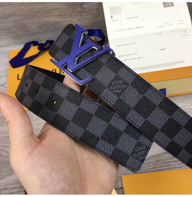 아이코닉한 LV이니셜 버클에 블루 래커로 정교하게 상감 세공한 리버서블