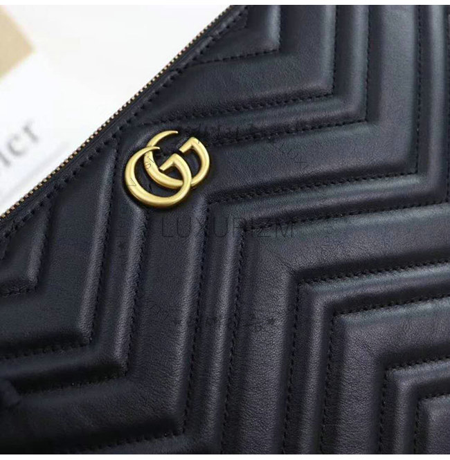블랙 마틀라세 쉐브론 가죽 브래스 메탈장식 더블G 내부 지퍼포켓 및 2개의 스마트폰 포켓