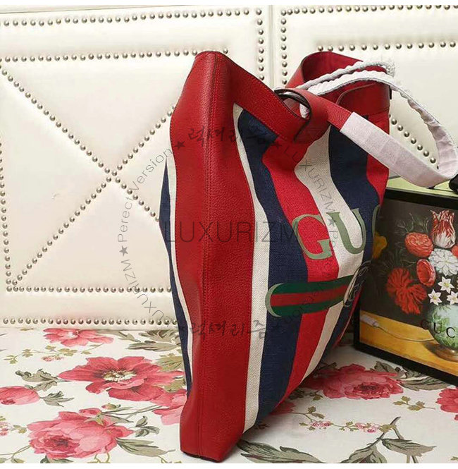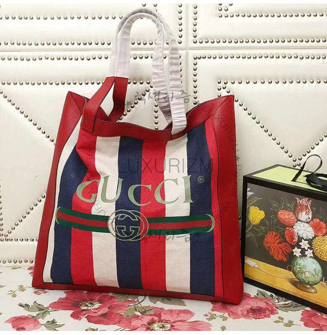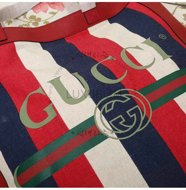 [스페셜오더]GUCCI-523774 9089 구찌 실비 스트라이프 캔버스 구찌 프린트 라지 토트백
