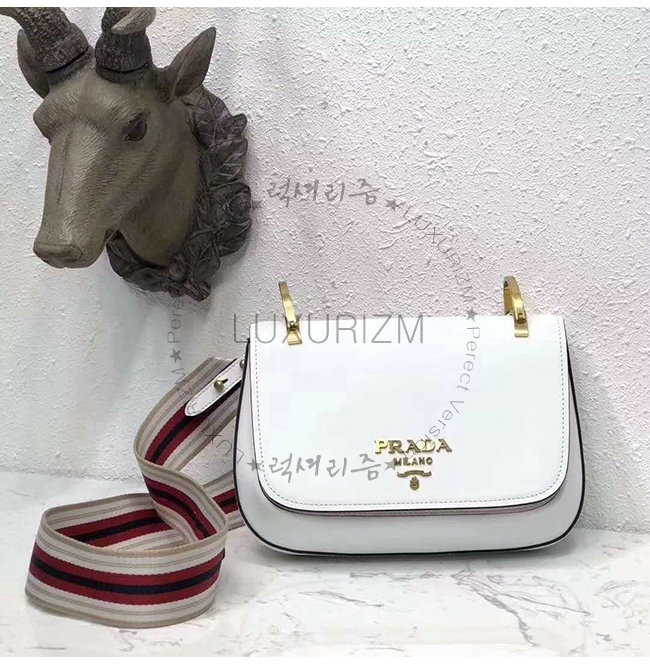[스페셜오더]PRADA-1BD110 프라다 화이트 송아지 가죽 멀티컬러 숄더 스트랩 백