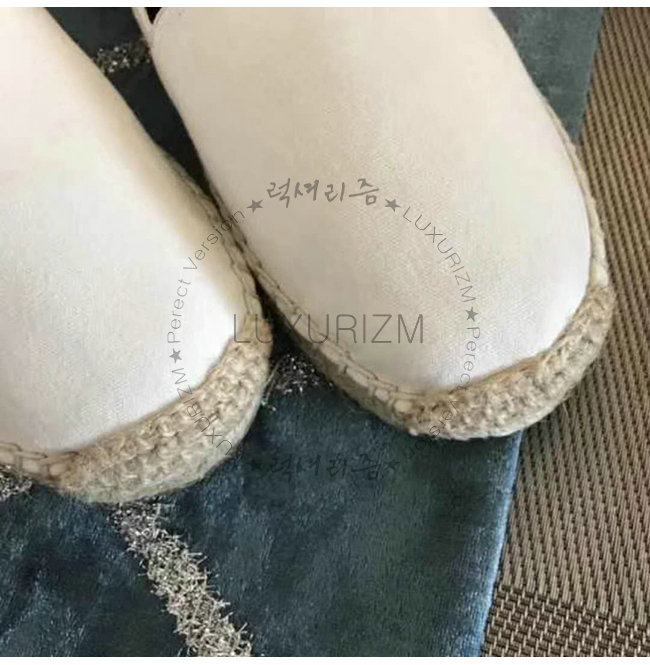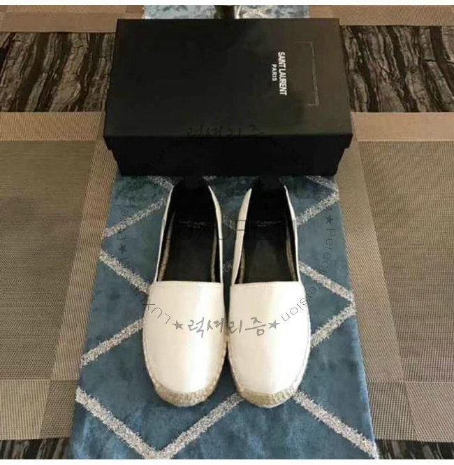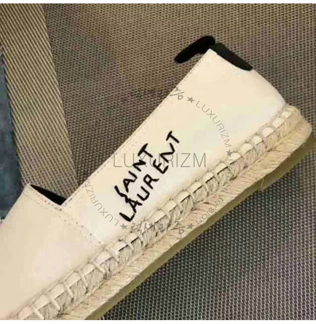 SAINT LAURENT-472066 생 로랑 아이보리 면 시그니처 자수 디테일 에스파드리유