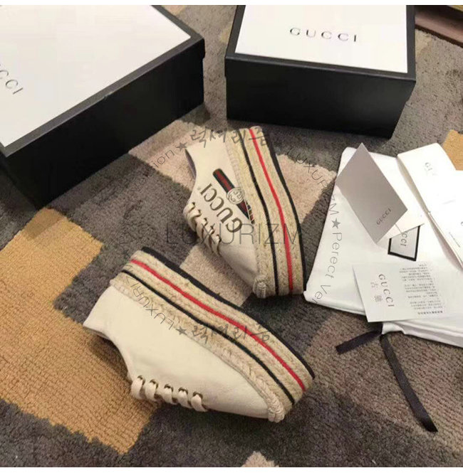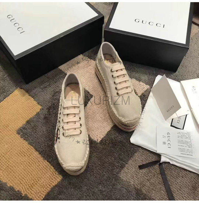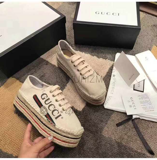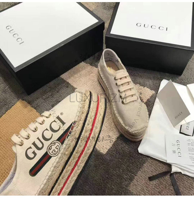 GUCCI-525771 9063 구찌 화이트 캔버스 구찌 로고 플랫폼 에스파드리유