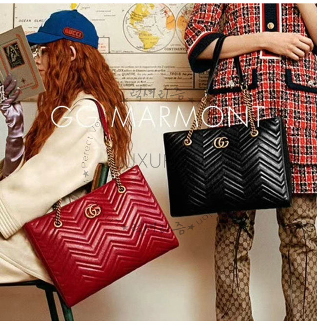 [스페셜오더]GUCCI-524578 1000 구찌 GG 마몽 블랙 마틀라세 가죽 미디엄 토트백