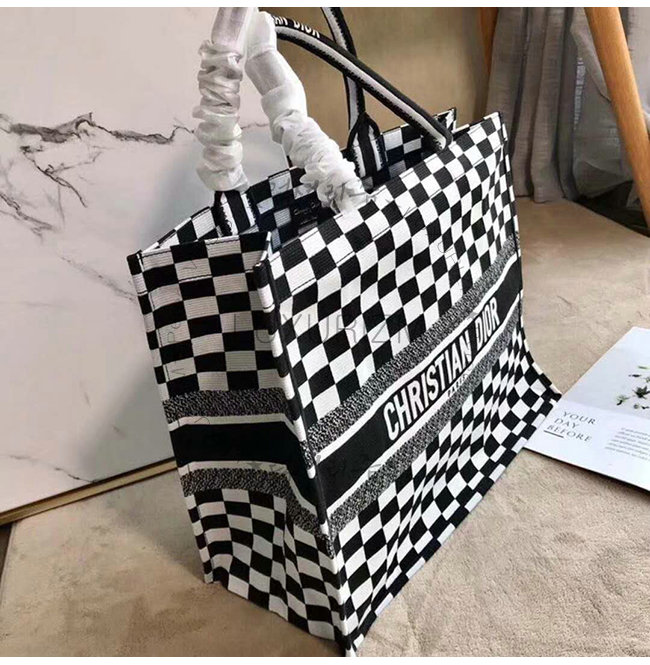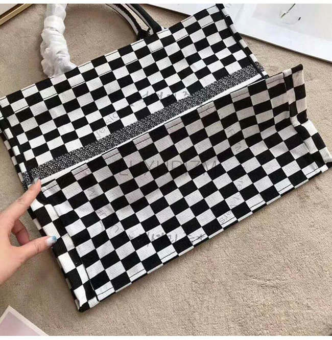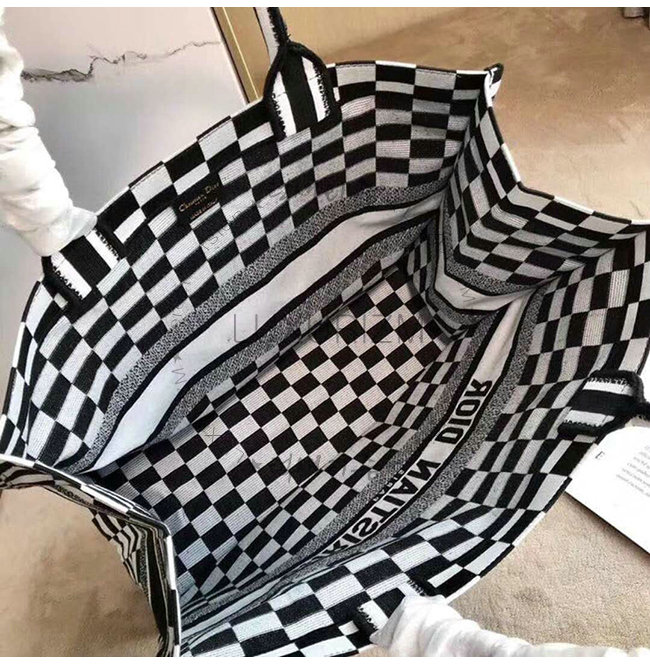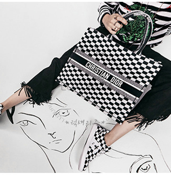 화이트와 블랙 자수 장식 패브릭 Dior Book Tote 백 토트백 또는 숄더백으로 착용.