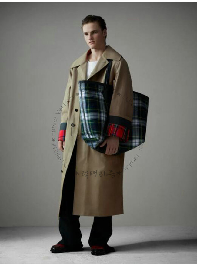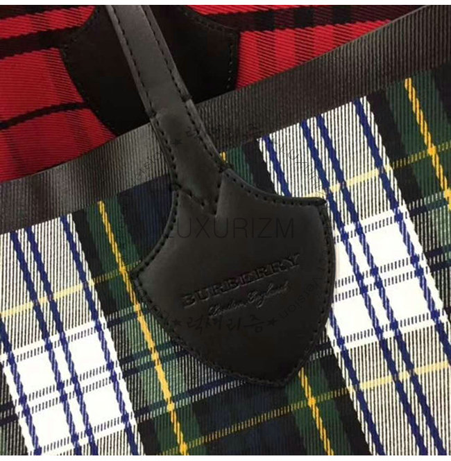 [스페셜오더]BURBERRY-40700531 버버리 자이언트 타탄 코튼 잉크 블루 밀리터리 레드 라지 리버시블 토트 백