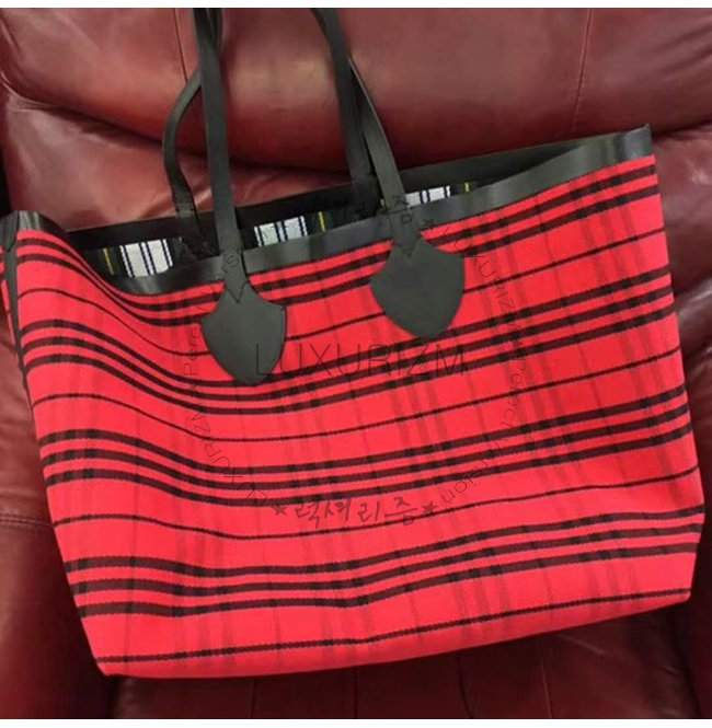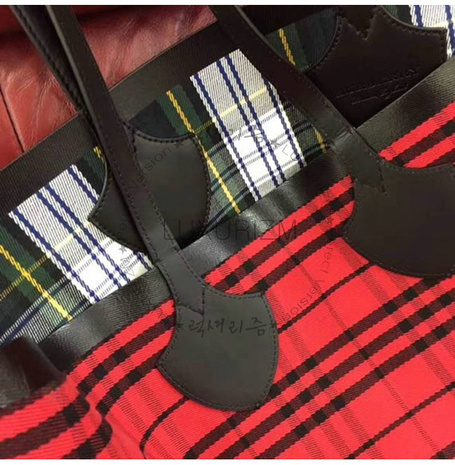 [스페셜오더]BURBERRY-40700531 버버리 자이언트 타탄 코튼 바이브런트 레드 블랙 라지 리버시블 토트 백