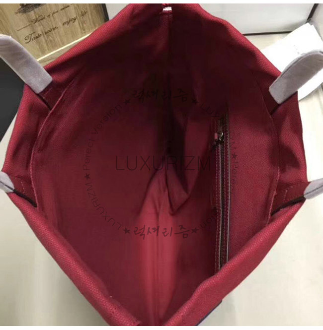 로고 프린트 내부 지퍼 포켓 더블 가죽 핸들 8cm 드롭 드로우스트링으로 활용할 수 있는 로프 스트랩.