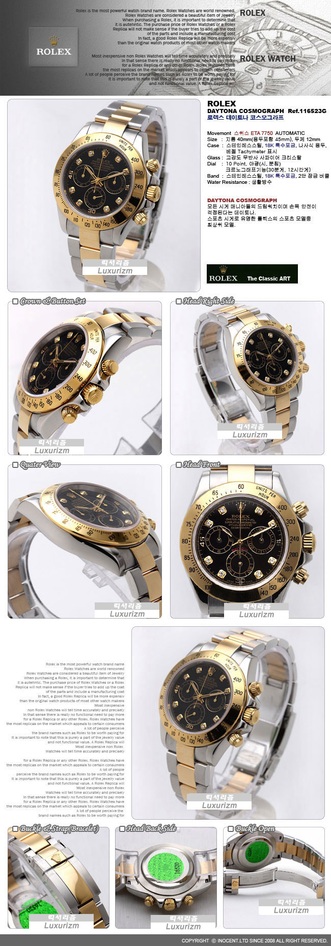 로렉스 데이토나 코스모그라프 Ref.116523 SWISS ETA7750 블랙 다이아 인덱스