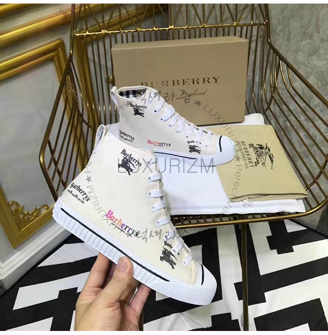 BURBERRY-40761921 버버리 아카이브 로고 코튼 하이톱 스니커즈