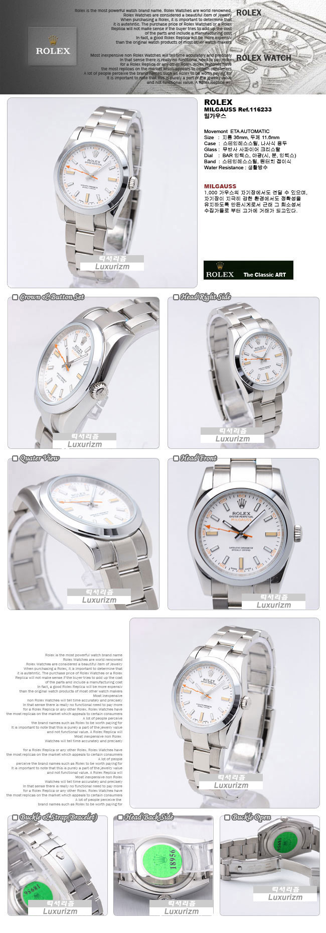 로렉스 MILGAUSS 밀가우스 Ref.116233 남성용