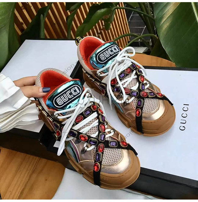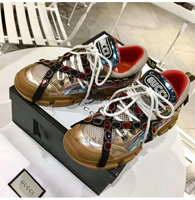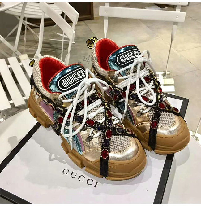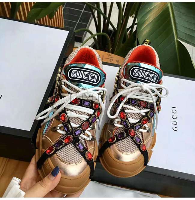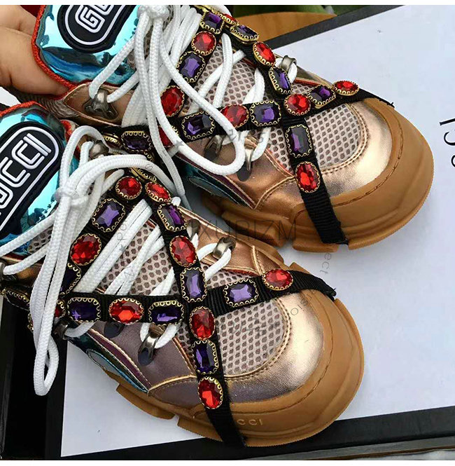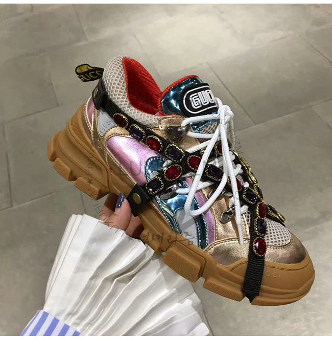 GUCCI-537133 8266 구찌 멀티 컬러 메탈릭 가죽 크리스털 디테일 스니커즈(남여공용)
