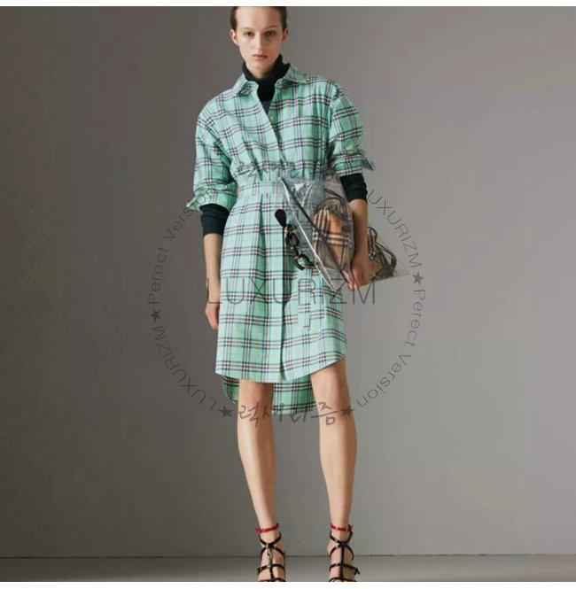 [스페셜오더]BURBERRY-40734731 버버리 체크 코튼 타이 웨이스트 셔츠 드레스