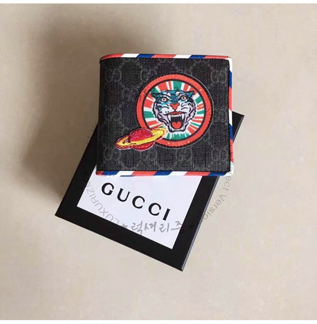 [스페셜오더]GUCCI-496333 1073 구찌 나이트 쿠리에 블랙 GG 수프림 타이거 아플리케 지갑