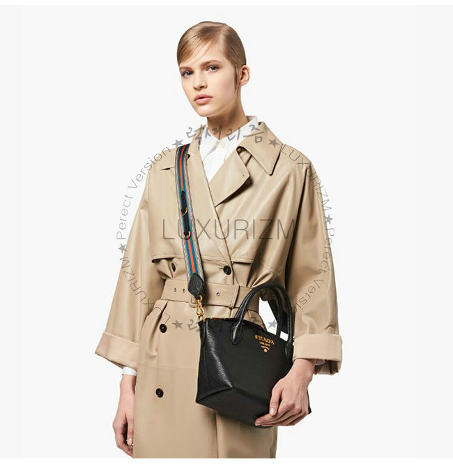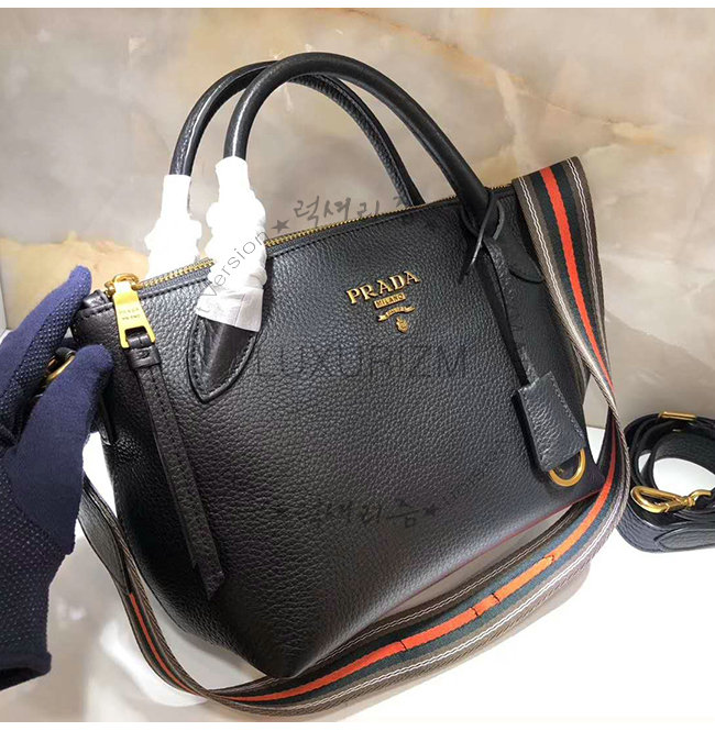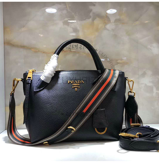 [스페셜오더]PRADA-1BA111 프라다 블랙 송아지 가죽 더블 가죽 핸들 숄더백