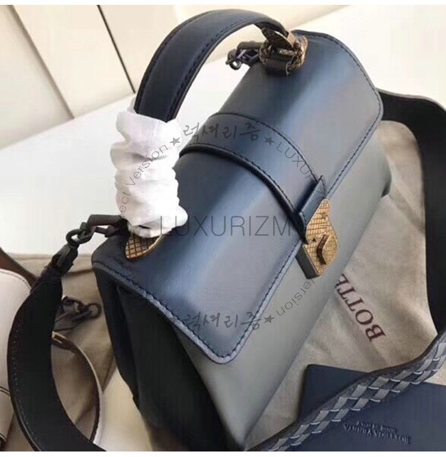 [스페셜오더]BOTTEGA VENETA-498992 보테가 베네타 네이비 카프스킨 스몰 피아짜 백
