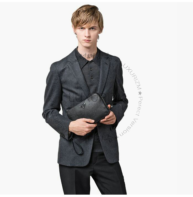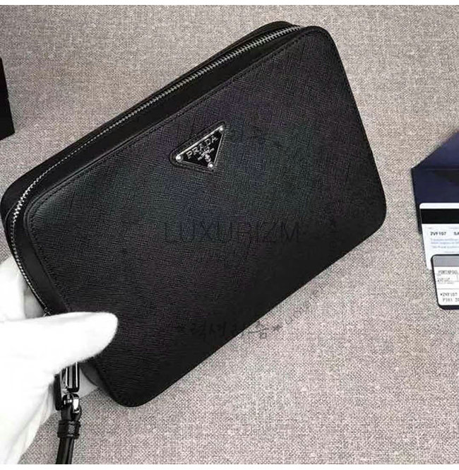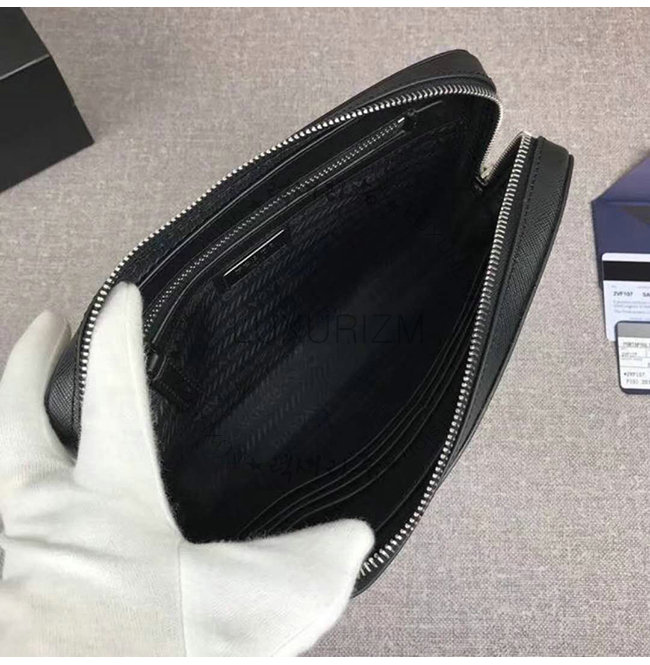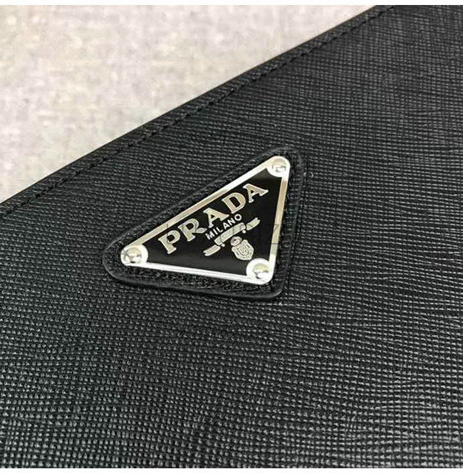 [스페셜오더]PRADA-2VF017 프라다 블랙 사피아노 가죽 트라이앵글 로고 케이스