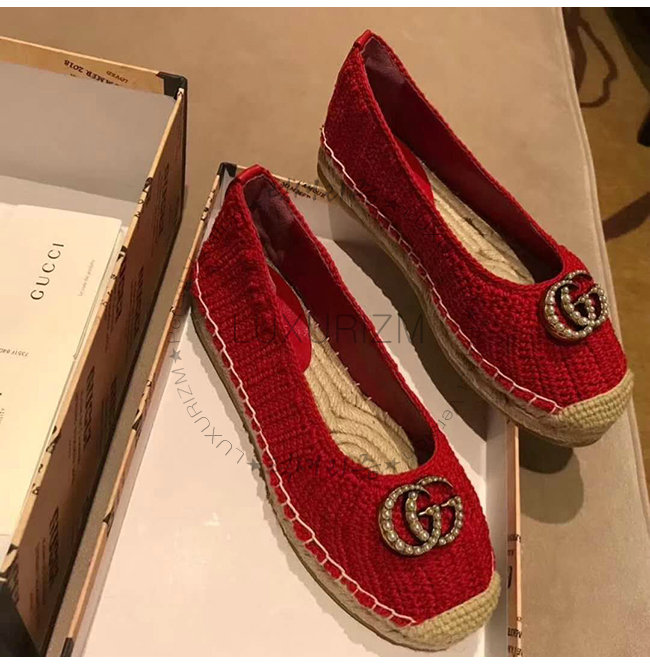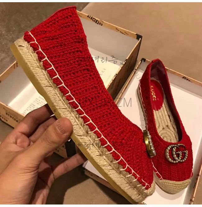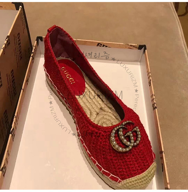 GUCCI-524974 6465 구찌 레드 코튼 크로쳇 에스파드리유