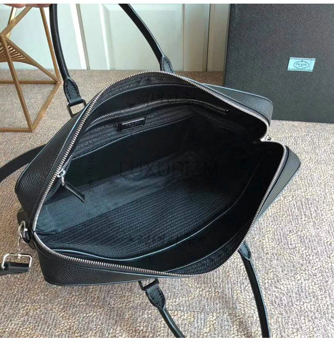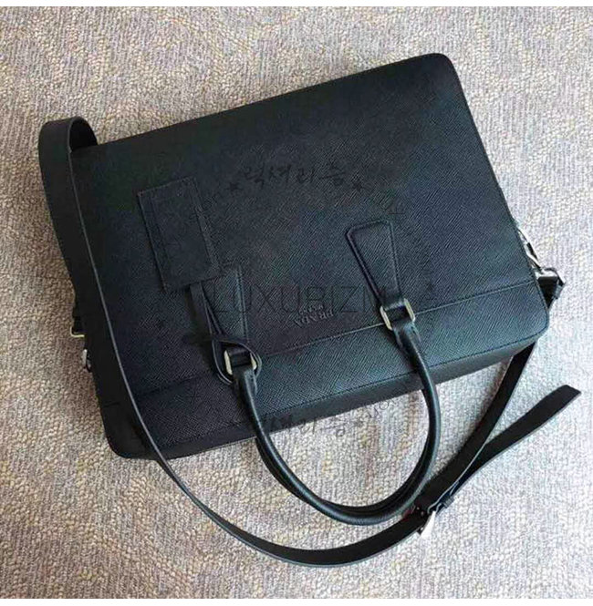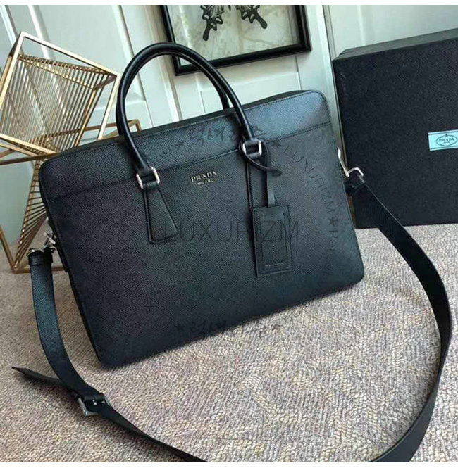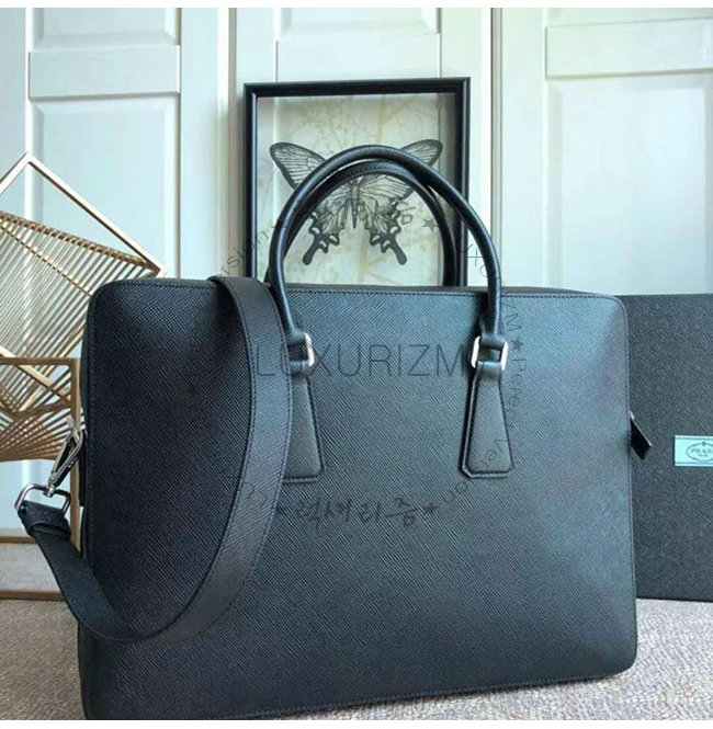 [스페셜오더]PRADA-2VE008 프라다 블랙 사피아노 꾸이르 가죽 브리프케이스