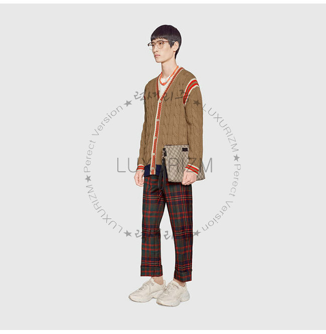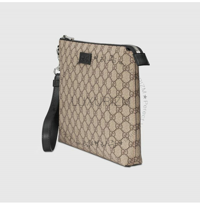 GUCCI-523293-9769 구찌 GG 슈프림 캔버스 가죽 태그 남성 파우치백