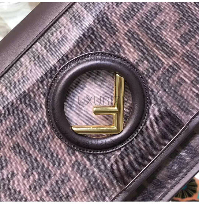 색조의 FF 로고 프린트. 톤온톤 가죽 피니싱. 팔라듐 및 골드 피니싱이 믹스된 메탈 장식.
