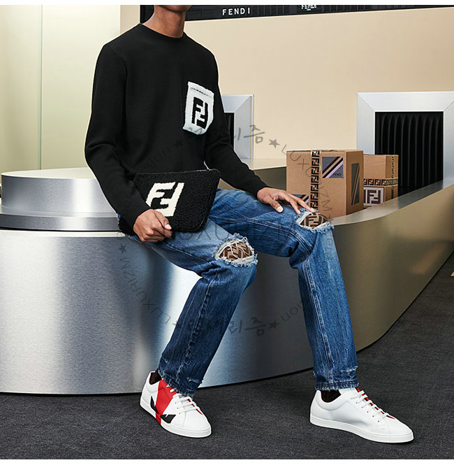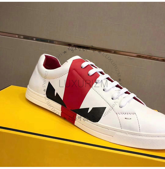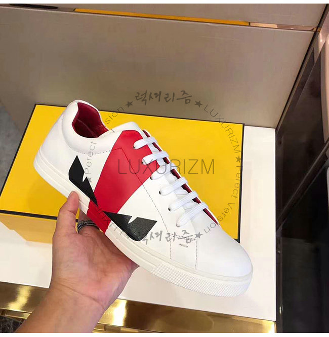 FENDI-7E1159 펜디 송아지 가죽 레드 디테일 백 버그 아이 로우탑 스니커즈