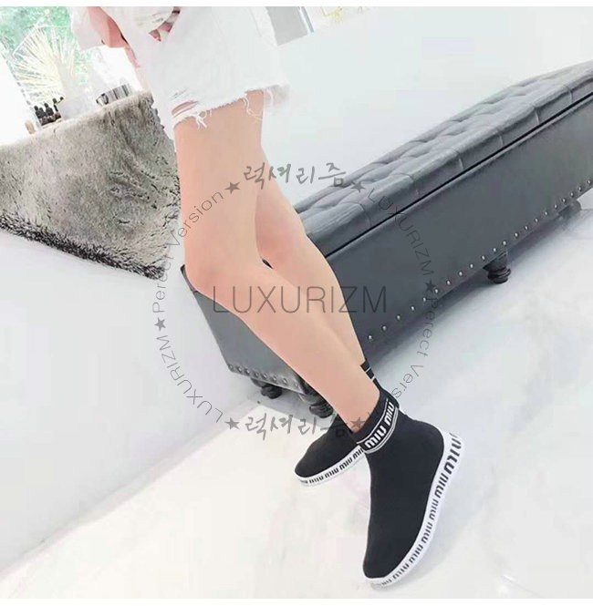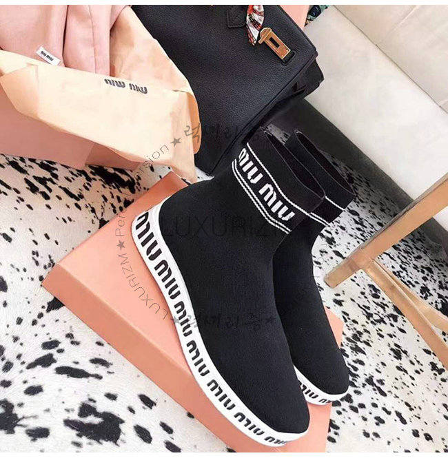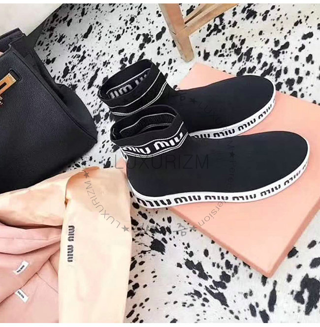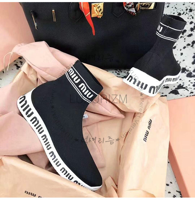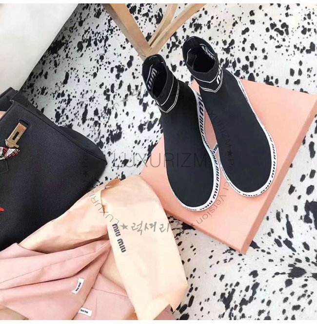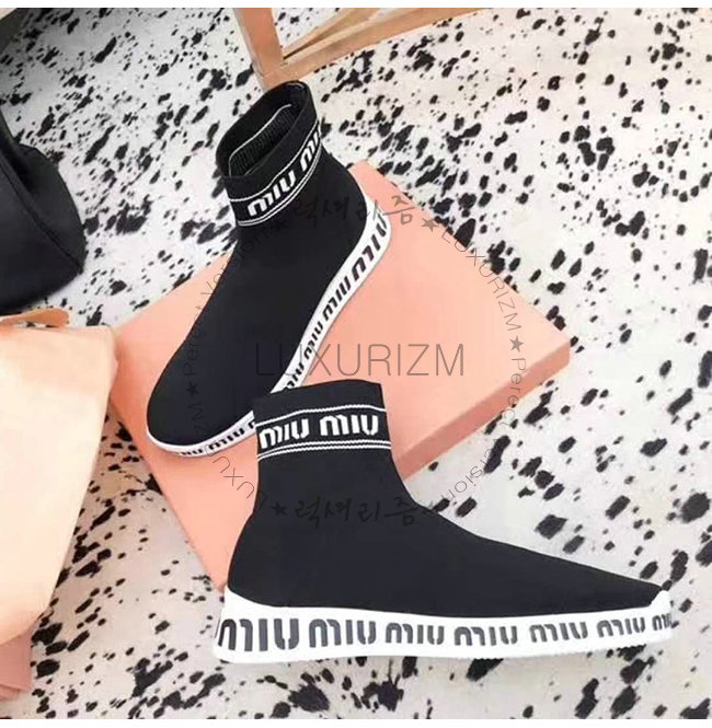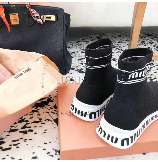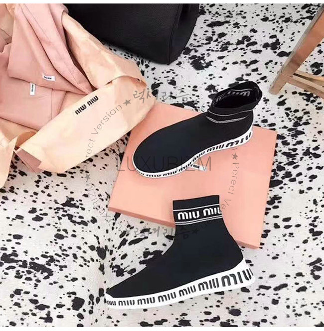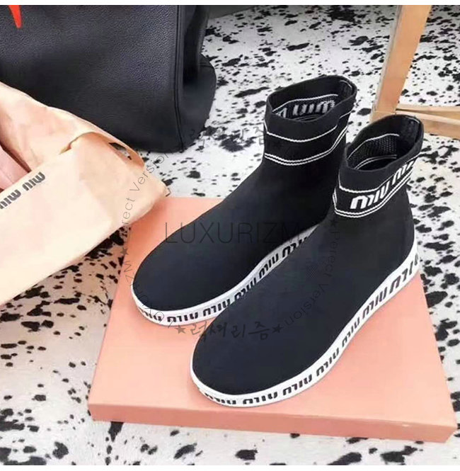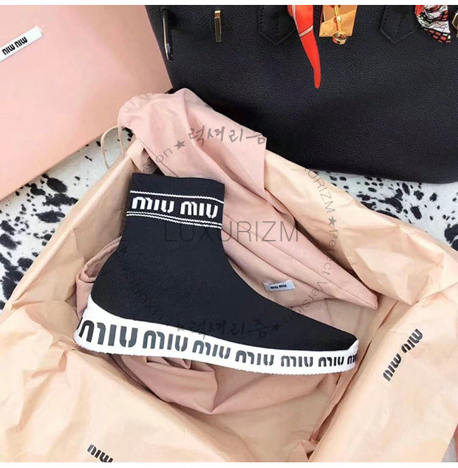 MIUMIU-5T070C 미우미우 블랙 니트 하이탑 스니커즈