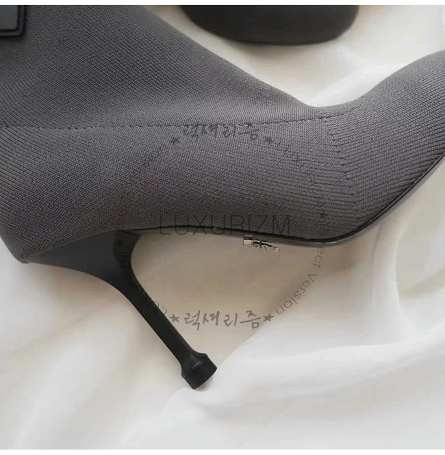 갑피: 스트레치 패브릭 라운드토 고무 트라이앵글 로고 90mm 스틸레토힐.
