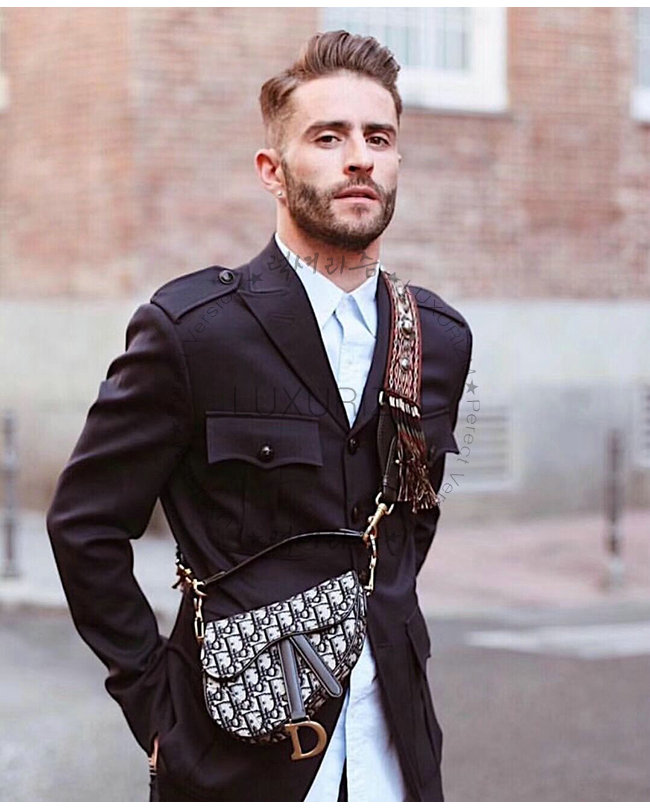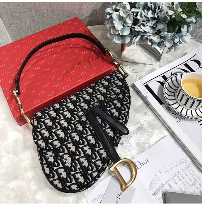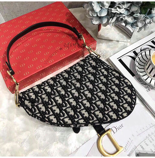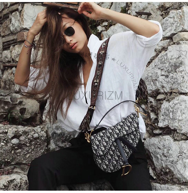 Dior Oblique 패브릭 Saddle 백, 암송아지 가죽 디테일.빈티지 골드 컬러 메탈 주얼리.
