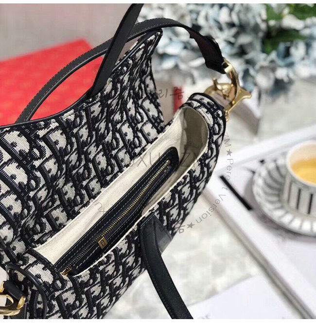 [스페셜오더]DIOR-M0446 디올 블루 Tie & Dior 자수 페브릭 새들백
