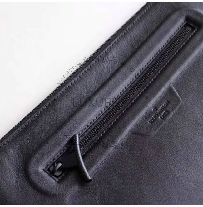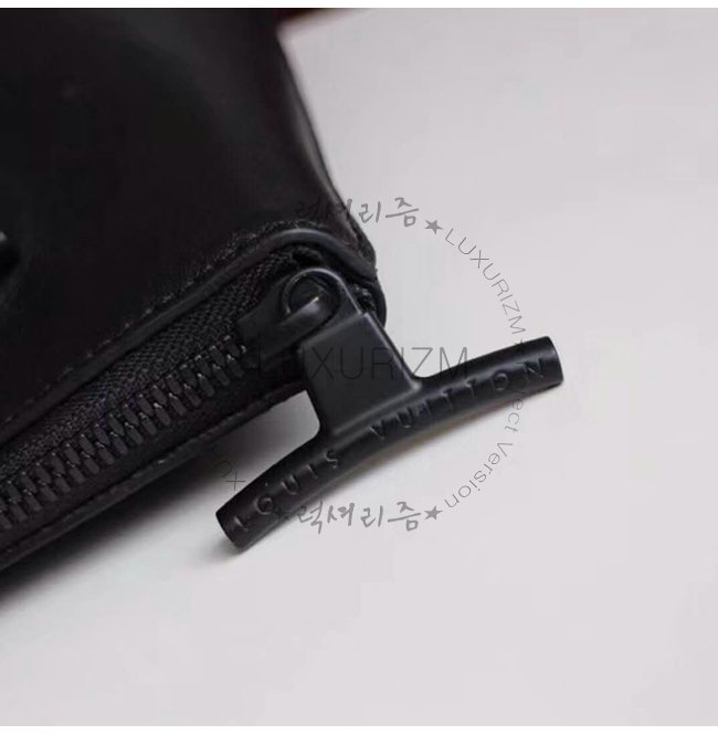 블랙 다크 인피니티 송아지 가죽 으로 제작 되었으며, 루이비통 시그니처가 새겨져 있습니다.
