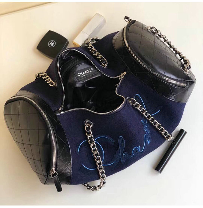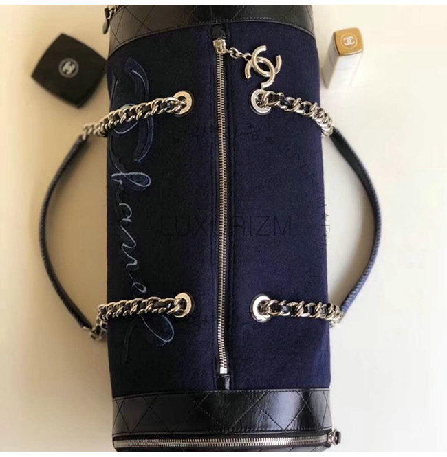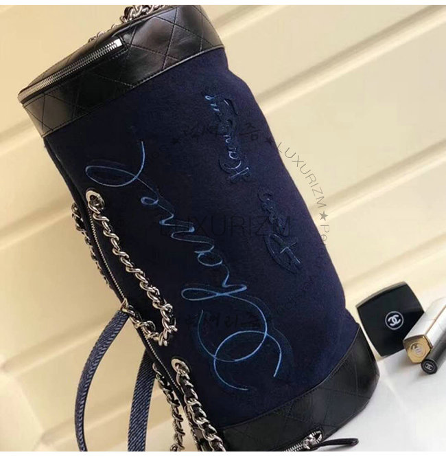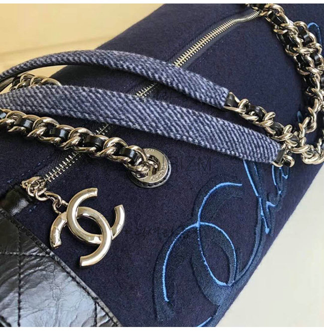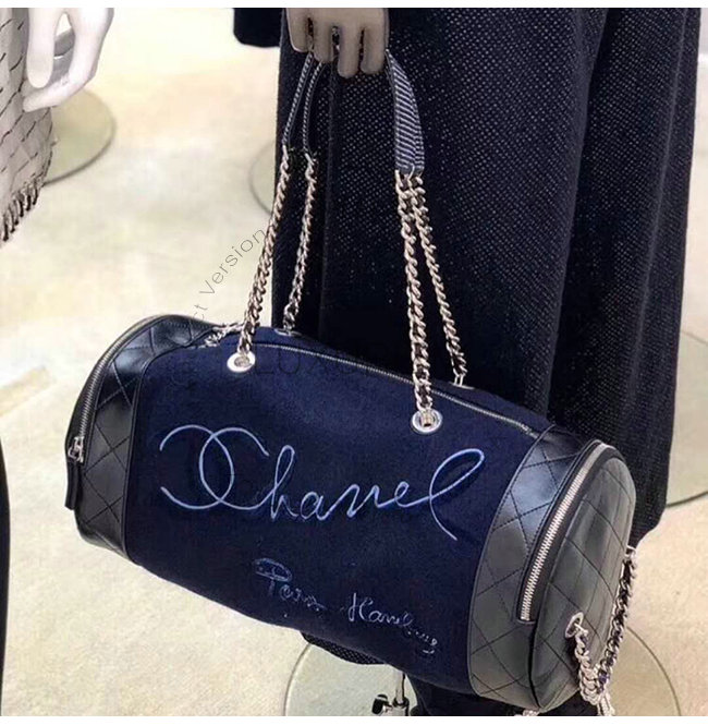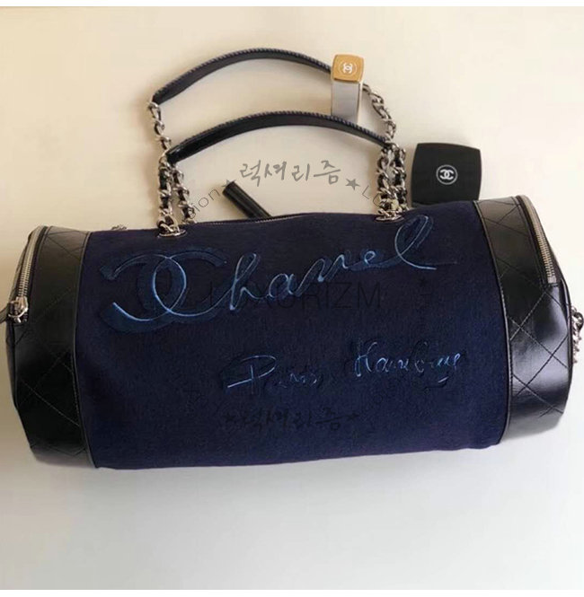 [스페셜오더]CHANEL-A57522 샤넬 블랙 울 자수 장식 실버메탈 볼링 핸드백