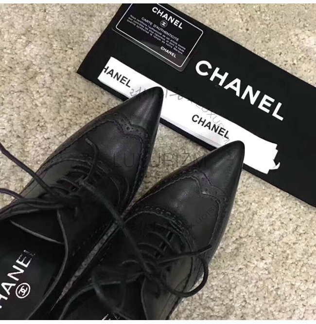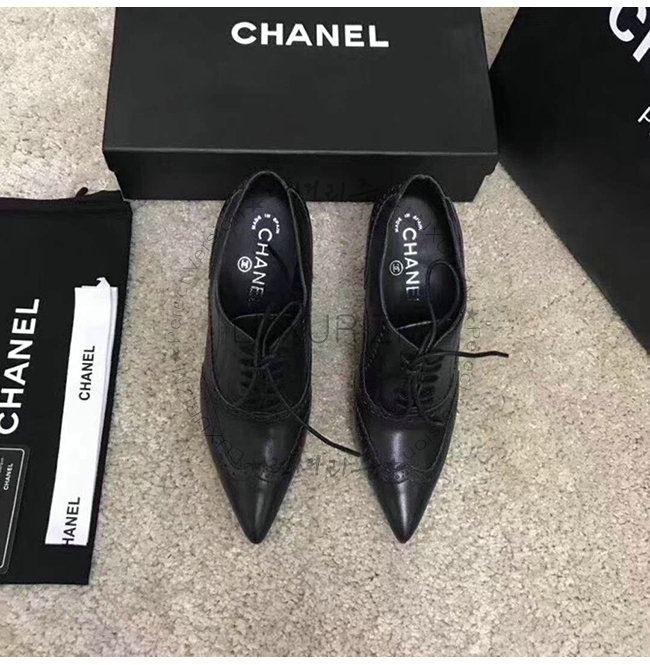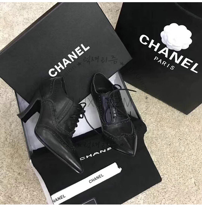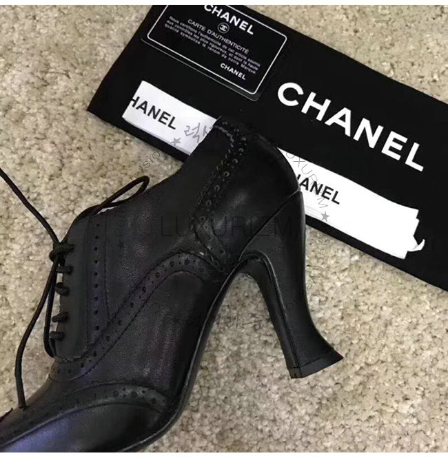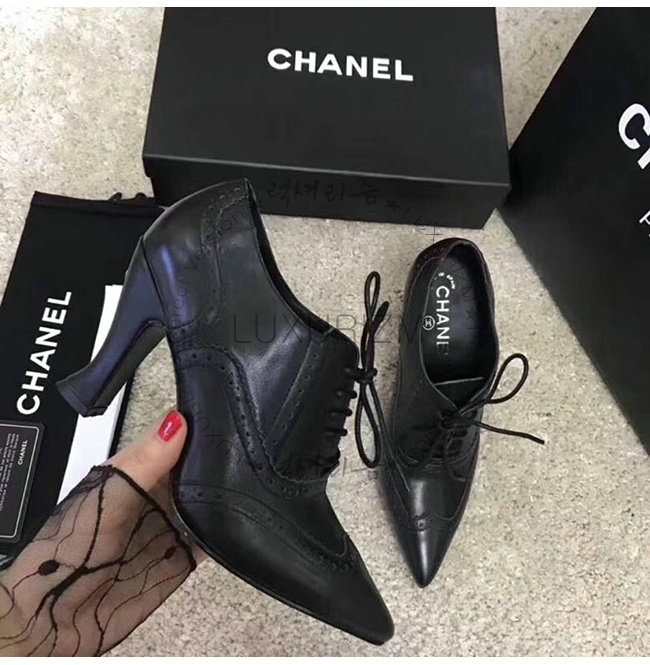 CHANEL-G33885 샤넬 블랙 카프스킨 하이힐 레이스업