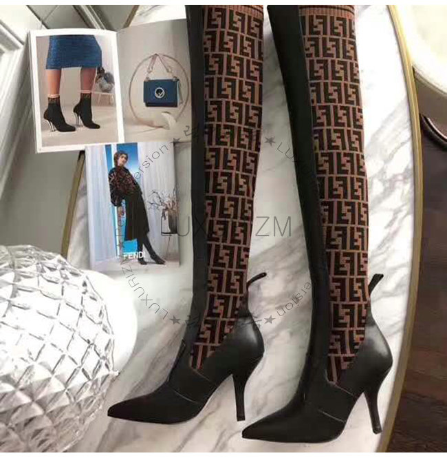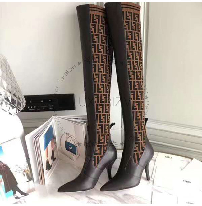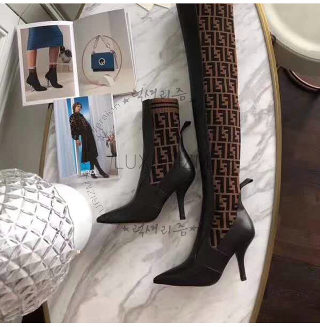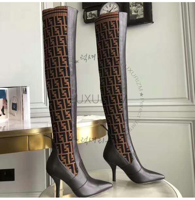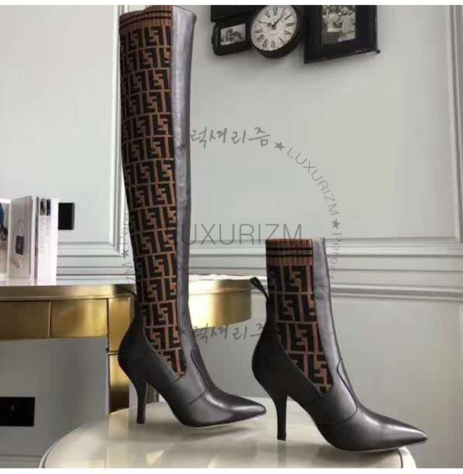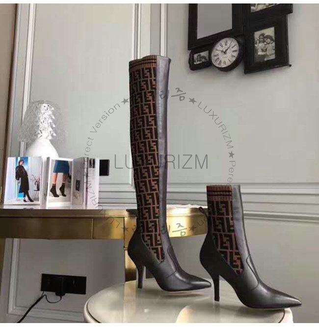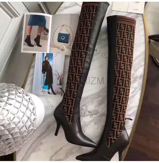 [스페셜오더]FENDI-8W6620 펜디 브라운 송아지 가죽 더블 F 니트 하이 부츠
