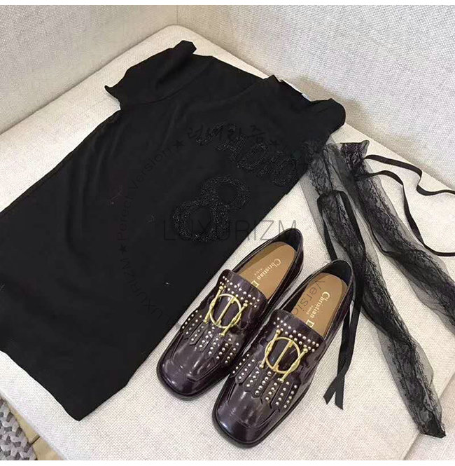DIOR-KDB164 디올 블랙 글레이즈드 송아지 가죽 스터드 장식 DIORDIRECTION 모카신