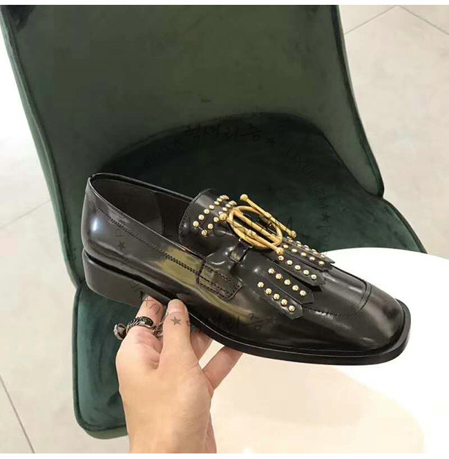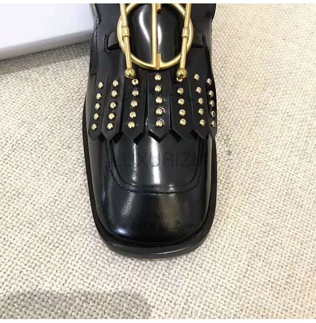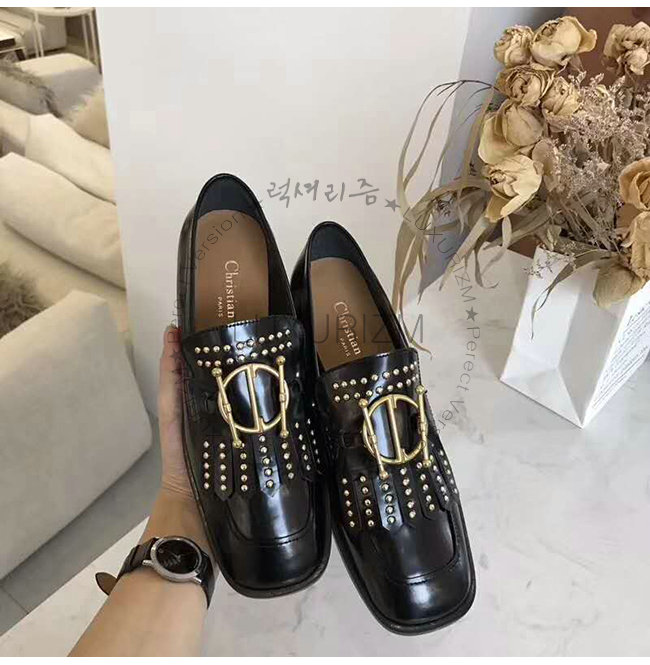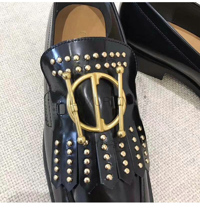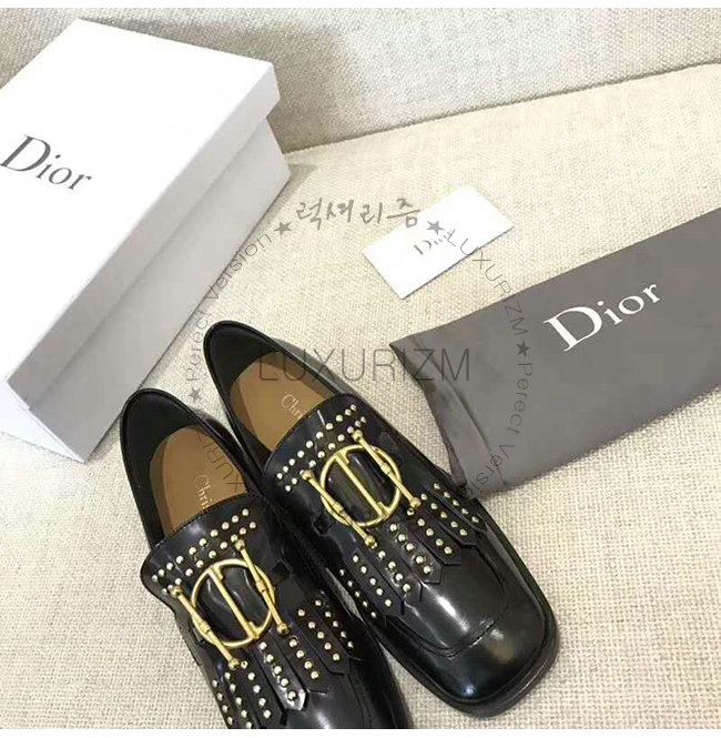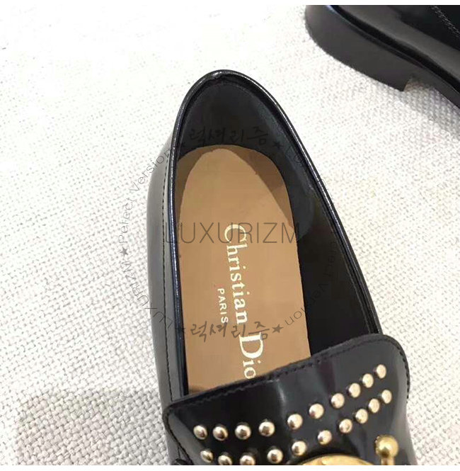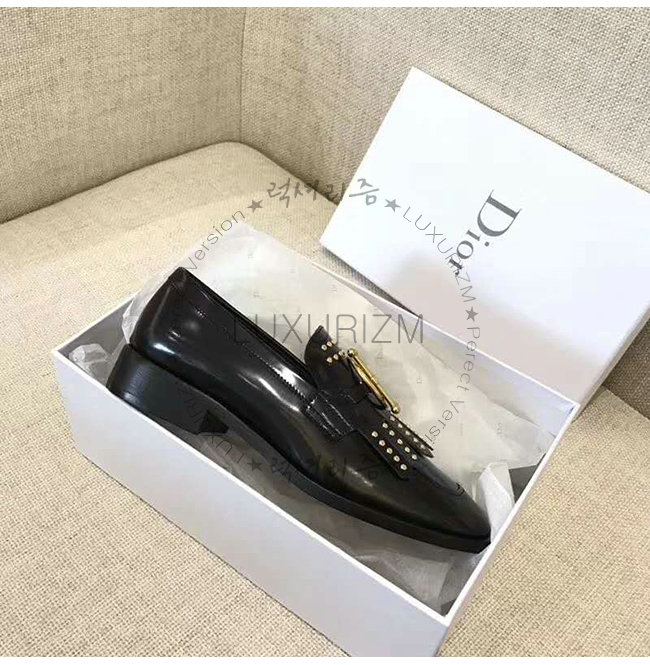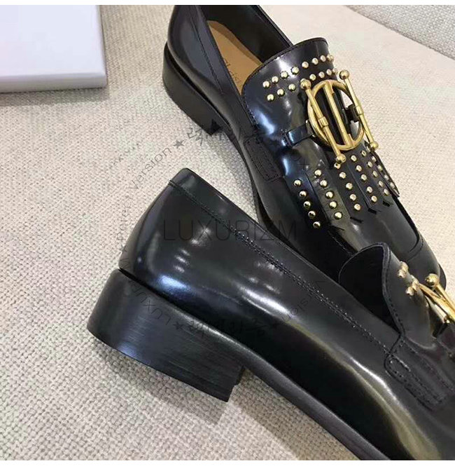 DIOR-KDB164 디올 블랙 글레이즈드 송아지 가죽 스터드 장식 DIORDIRECTION 모카신