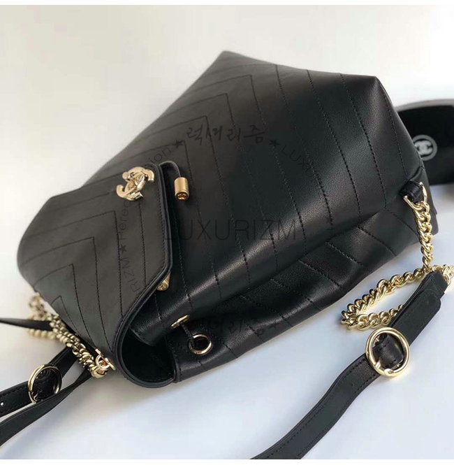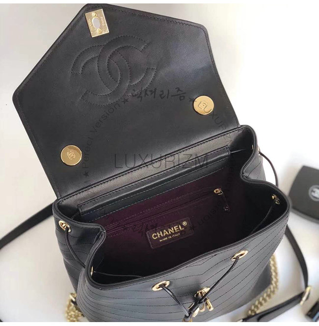 [스페셜오더]CHANEL-A57555 샤넬 블랙 카프스킨 골드메탈 백팩