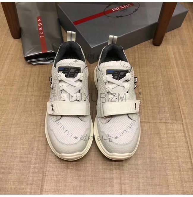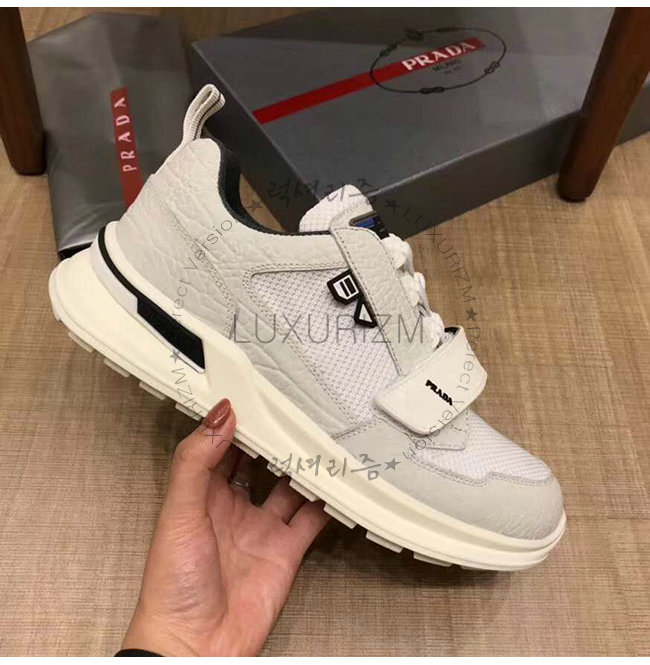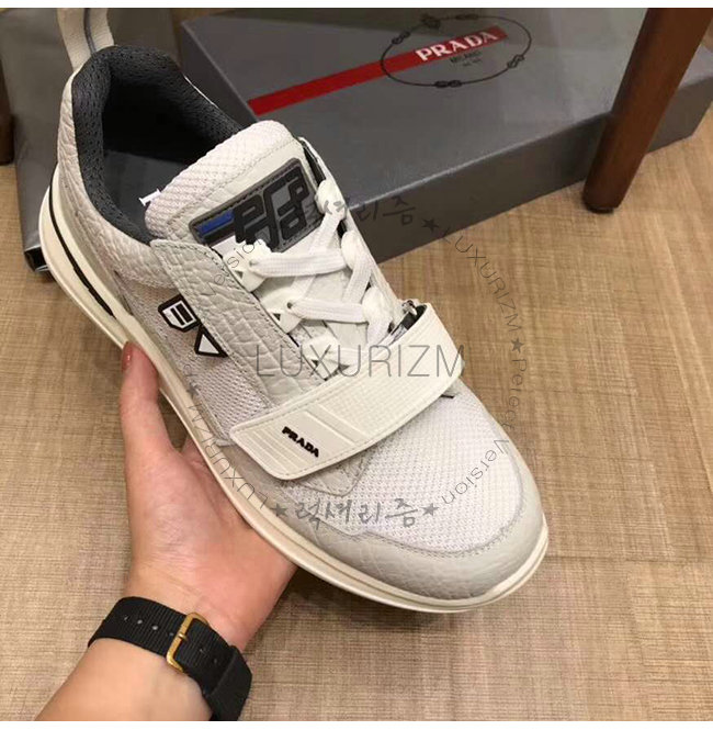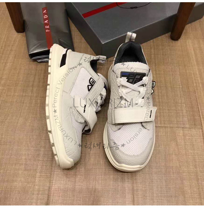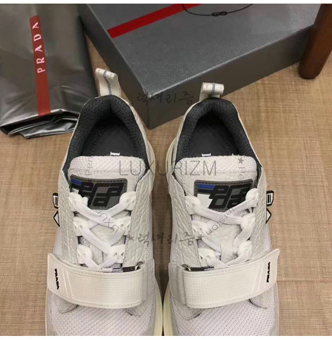 [스페셜오더]PRADA-2EG266 프라다 화이트 기능성 페브릭 고무 로고 스니커즈