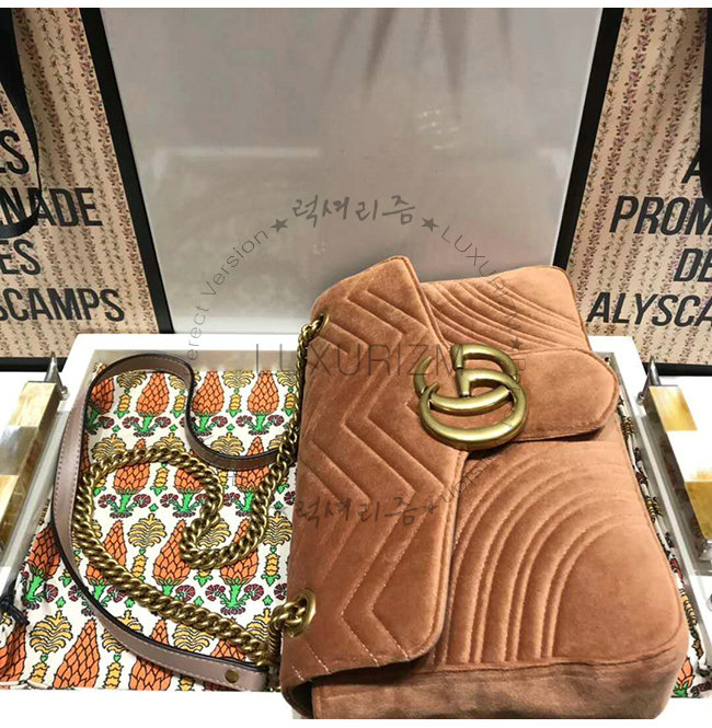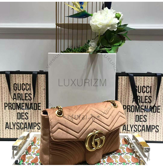 [스페셜오더]GUCCI-443496 2807 구찌 GG Marmont 토프 벨벳 미디엄 숄더백