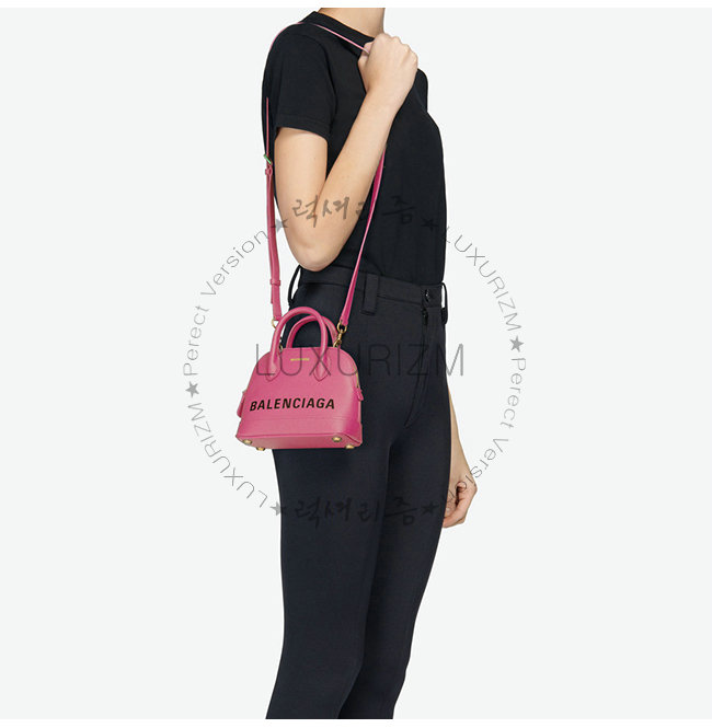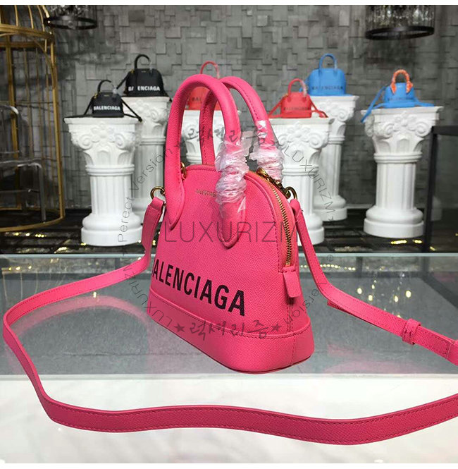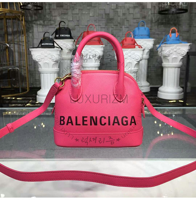 [스페셜오더]BALENCIAGA-525050 발렌시아가 핫핑크 그레인드 송아지 가죽 빌 탑 핸들백 XXS