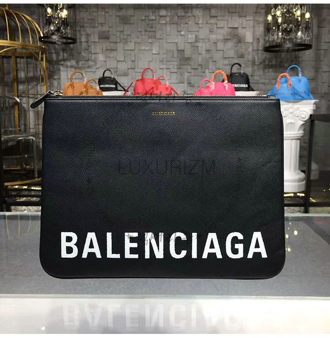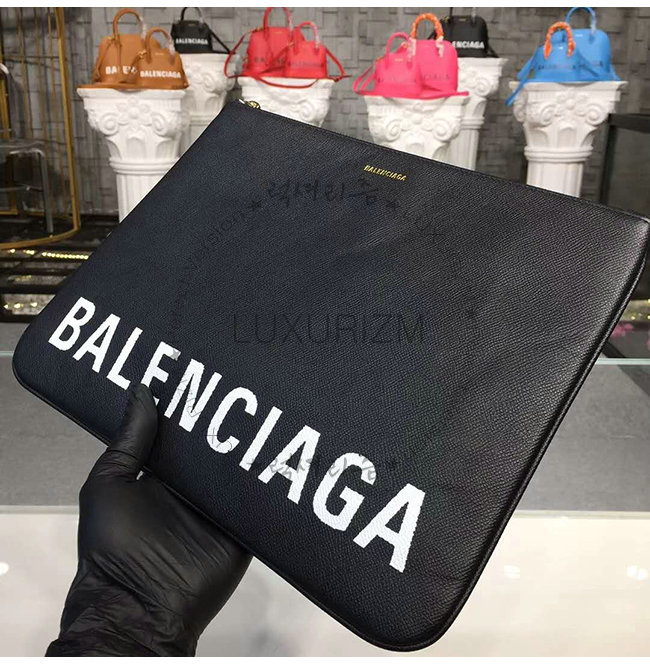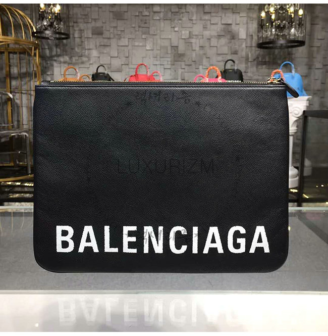 [스페셜오더]BALENCIAGA-482389 발렌시아가 블랙 그레인드 송아지 가죽 빌 파우치 M
