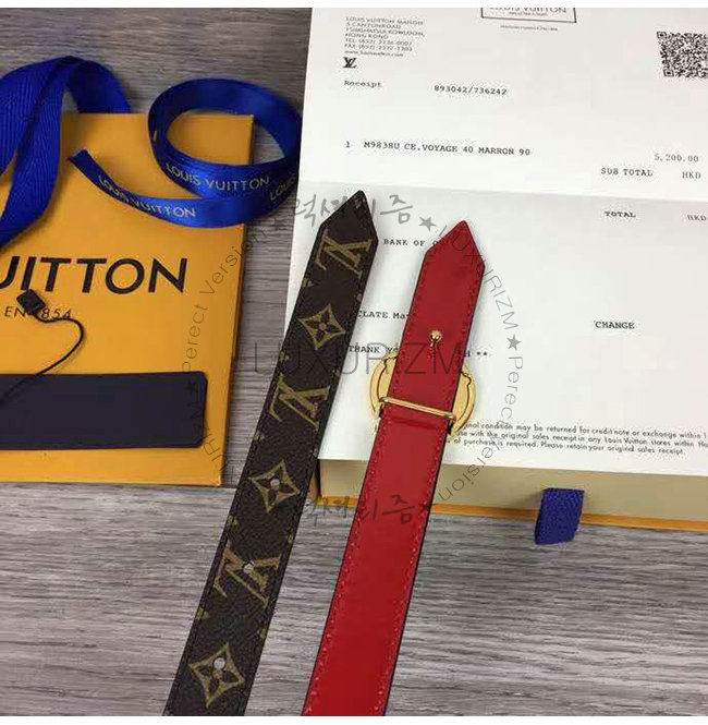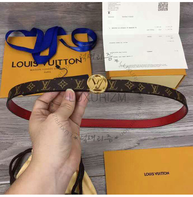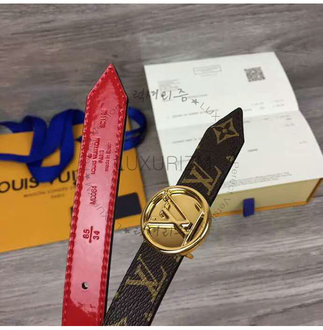 [스페셜오더]LOUIS VUITTON-M0084V 루이비통 모노그램 레드 페이턴트 송아지 가죽 LV 써클 리버서블 벨트 20MM