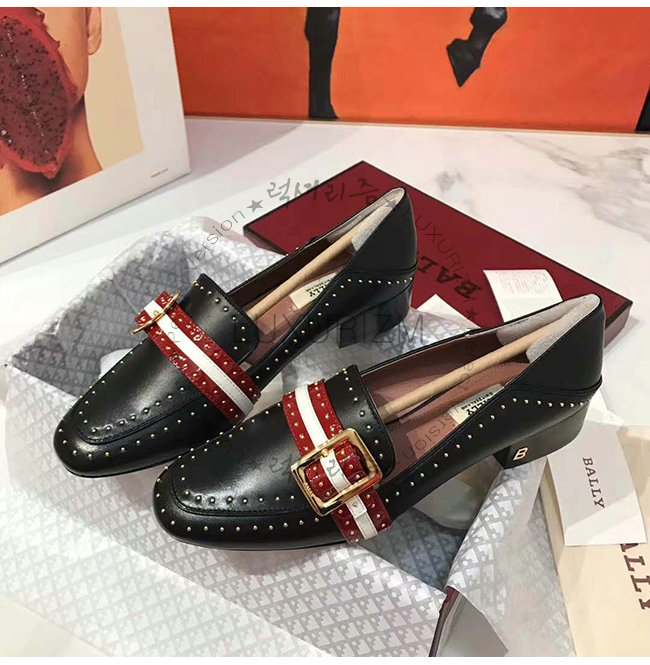 BALLY-6223338 발리 블랙 레드 카프스킨 스터드 장식 JANELLE 펌프스