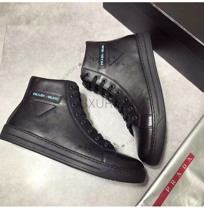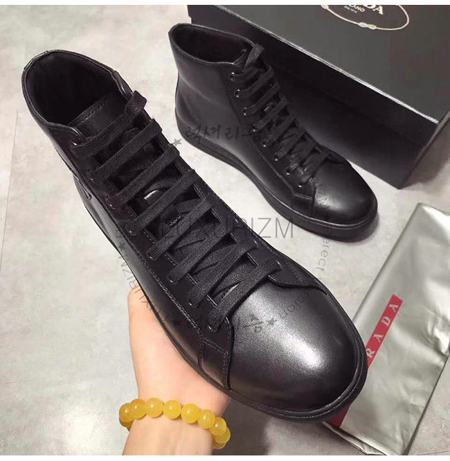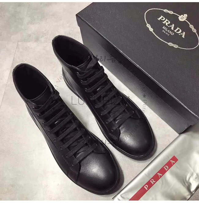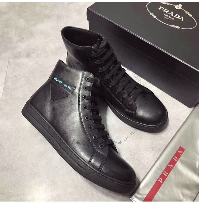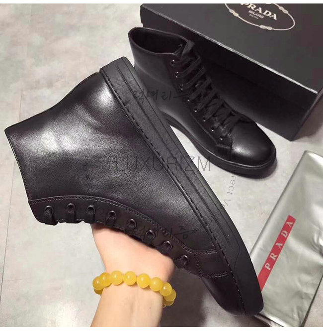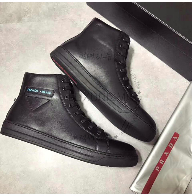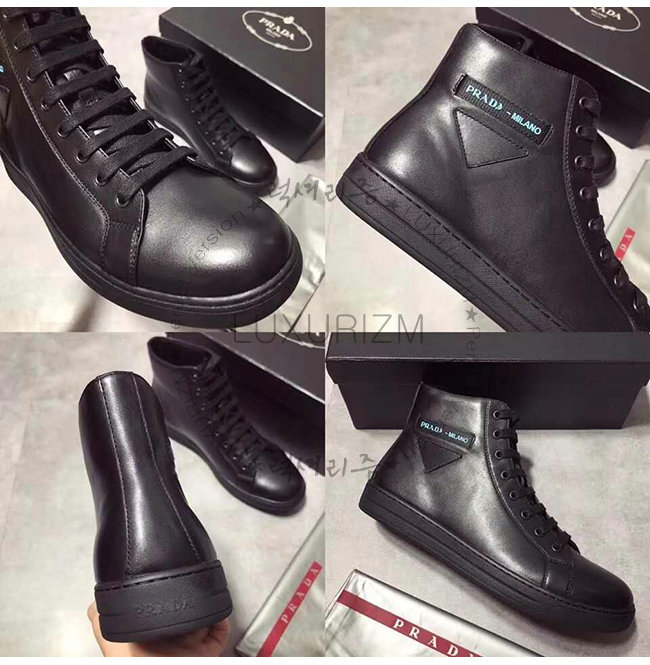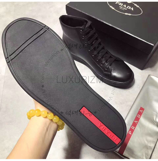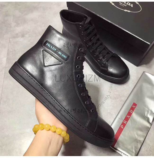 [스페셜오더]PRADA-4T3320 프라다 블랙 송아지 가죽 에티켓 라벨 하이탑 스니커즈