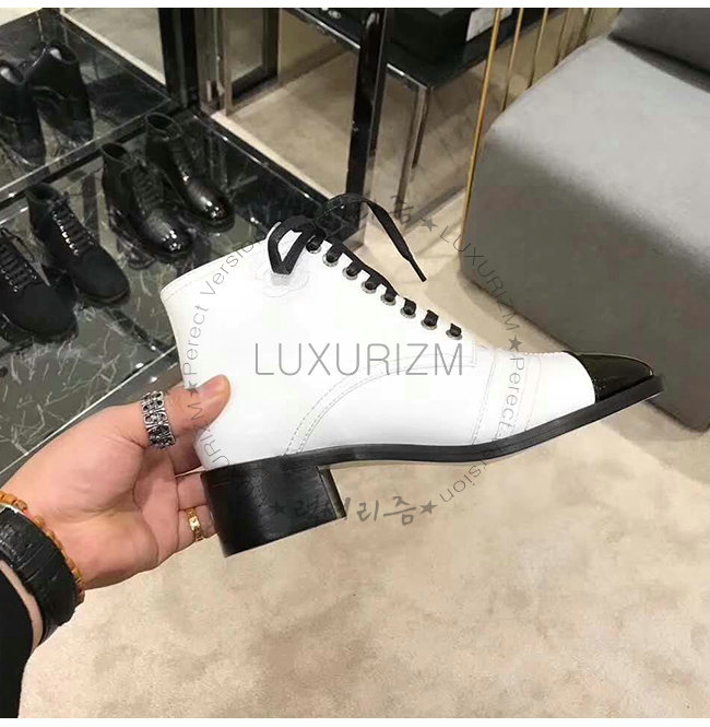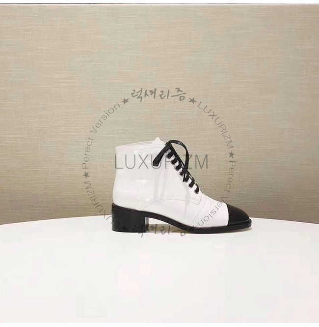 CHANEL-G33855 샤넬 화이트 페이턴트 카프스킨 레이스업