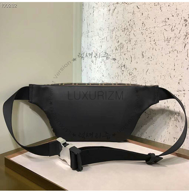 지퍼 잠금식 벨트 백. 길이 조절 가능 벨트. 브라운 컬러의 송아지 가죽 소재. 블랙