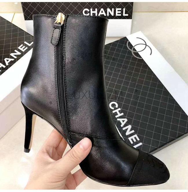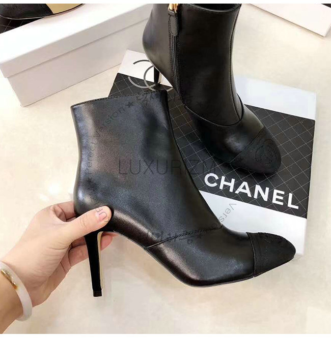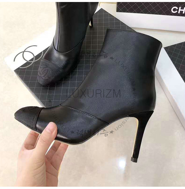 CHANEL-G33426 샤넬 블랙 램스킨 그로그랭 쇼트 부츠